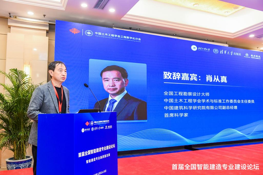 肖从真大师代表主办方向出席会议的各位嘉宾致以诚挚的问候和衷心的感谢。他表示,中国土木工程学会学术与标准工作委员会高度重视智能建造的发展,积极组织和参与智能建造相关的学术研究和标准制定,希望通过科研和标准化工作助力智能建造的高质量发展。同时,中国土木工程学会学术与标准工作委员会也高度重视与各高等院校的合作,共同推动智能建造专业建设和人才培养,服务国家创新驱动发展战略和教育部新工科建设。
