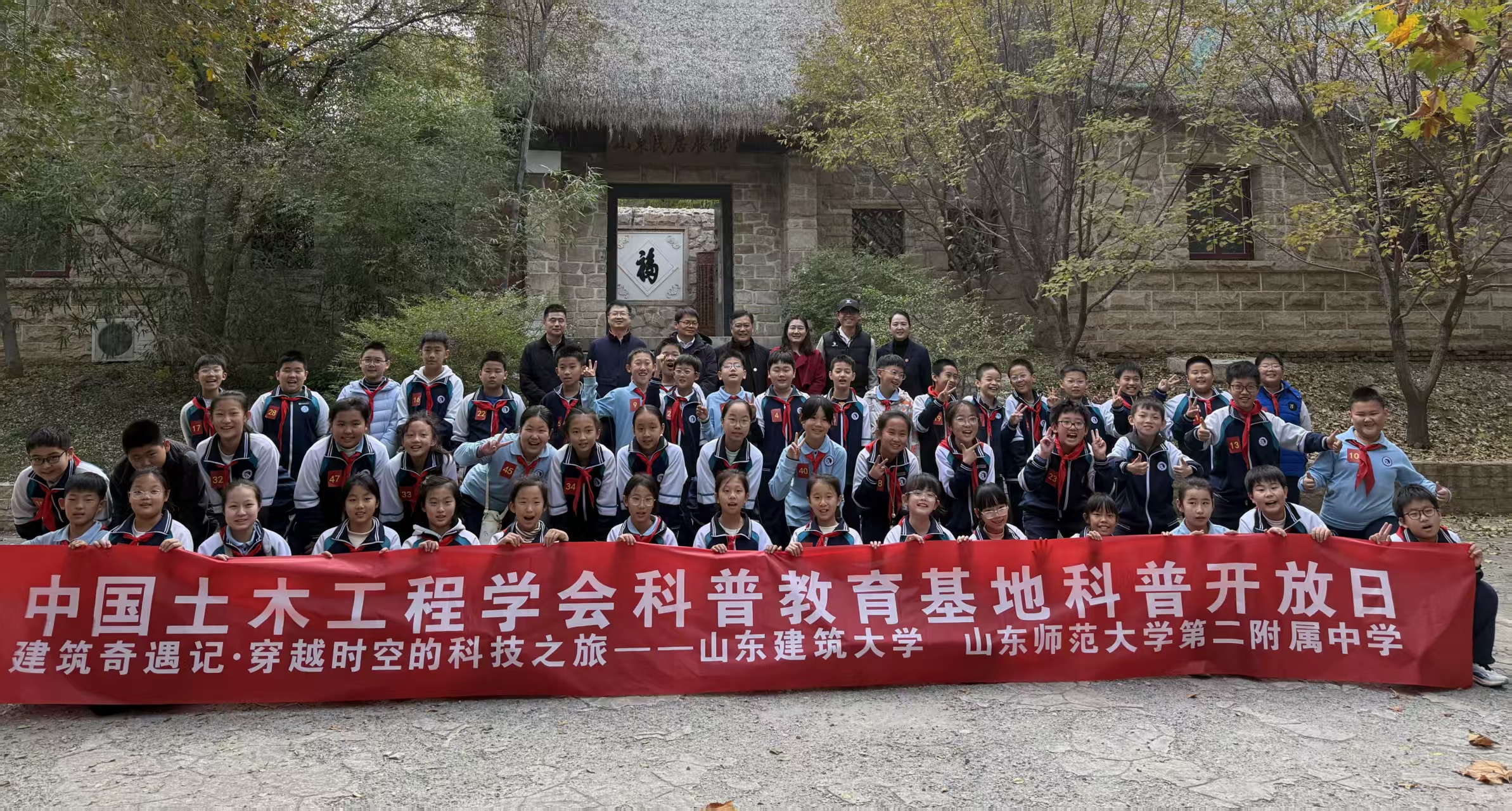 近日,中国土木工程学会科普教育基地山东建筑科技与文化科普教育基地,以“建筑奇遇记·穿越时空的科技之旅”为主题的科普活动在山东建筑大学举行。中国土木工程学会工程数字化分会副秘书长赵雪锋、理事王立雷,山东建筑大学继续教育学院院长胡大启、副院长魁娜、山东建筑大学土木工程学院院长闫凯,山东师范大学第二附属中学建大校区50名师生参加活动。