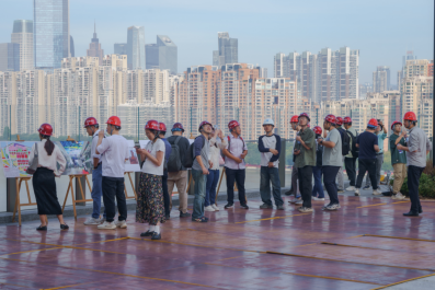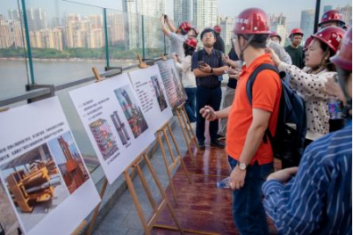 14日上午,参会的老师和同学们来到腾讯广州总部大厦项目进行参观交流,该项目由中建二局承建,以位于主塔的数个大悬臂平台为特色,最大悬臂长度达到28m。参观人员听取了项目总工关于建筑结构形式的讲解与介绍,并登上观景平台与项目人员详细学习交流。