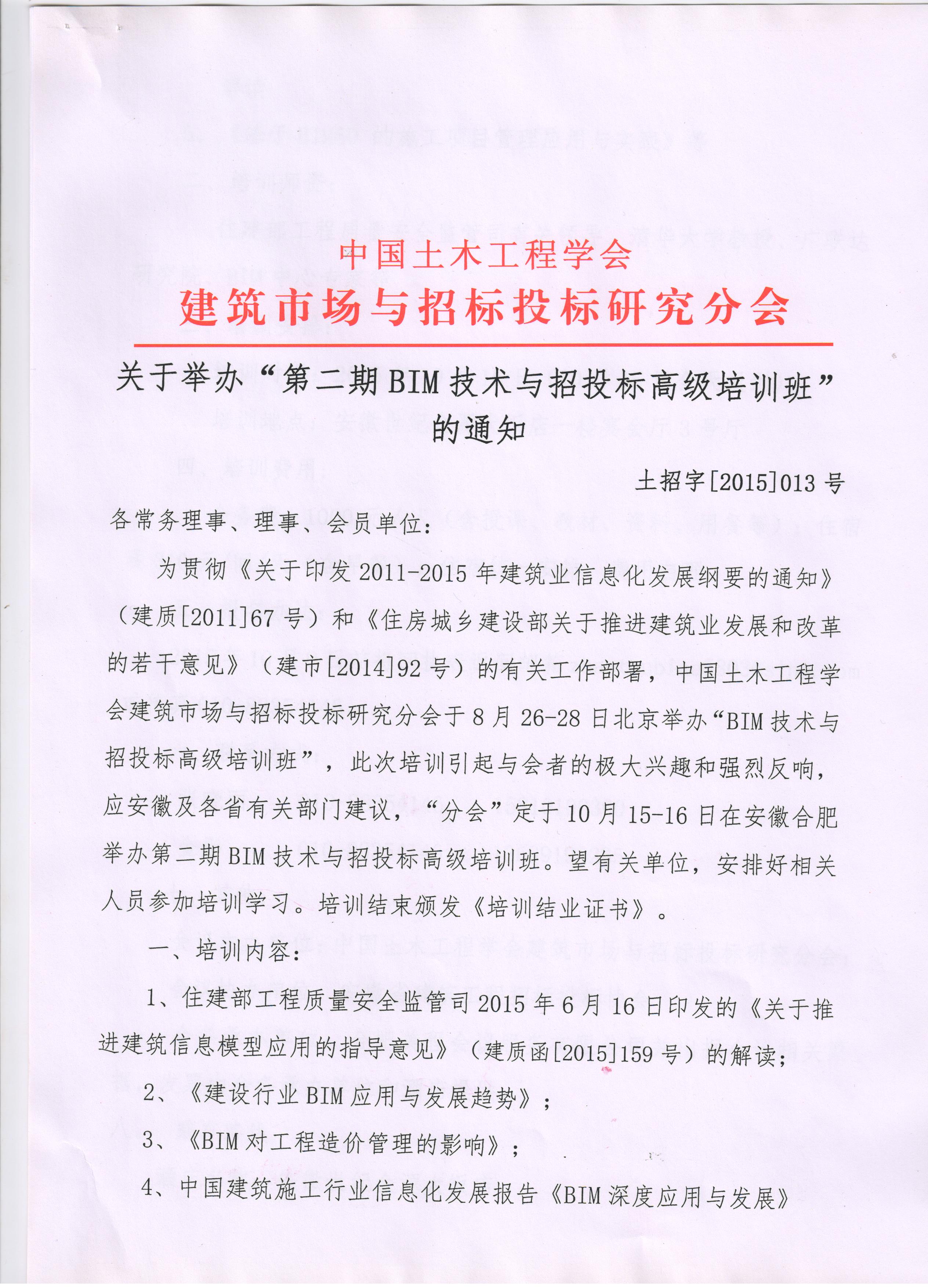 关于举办“第二期BIM技术与招投标高级培训班”的通知