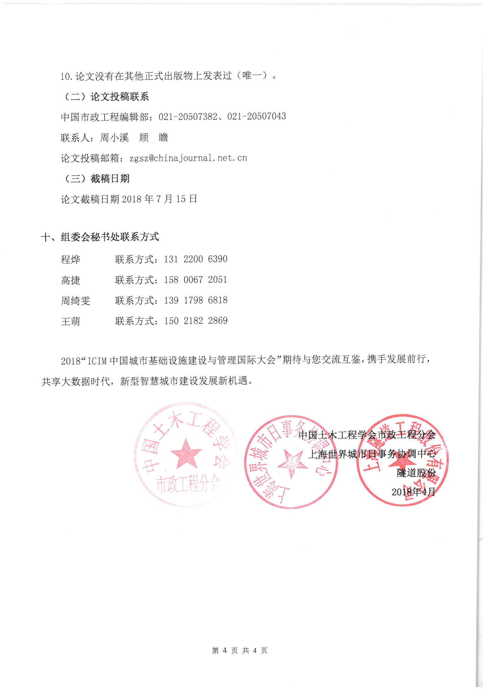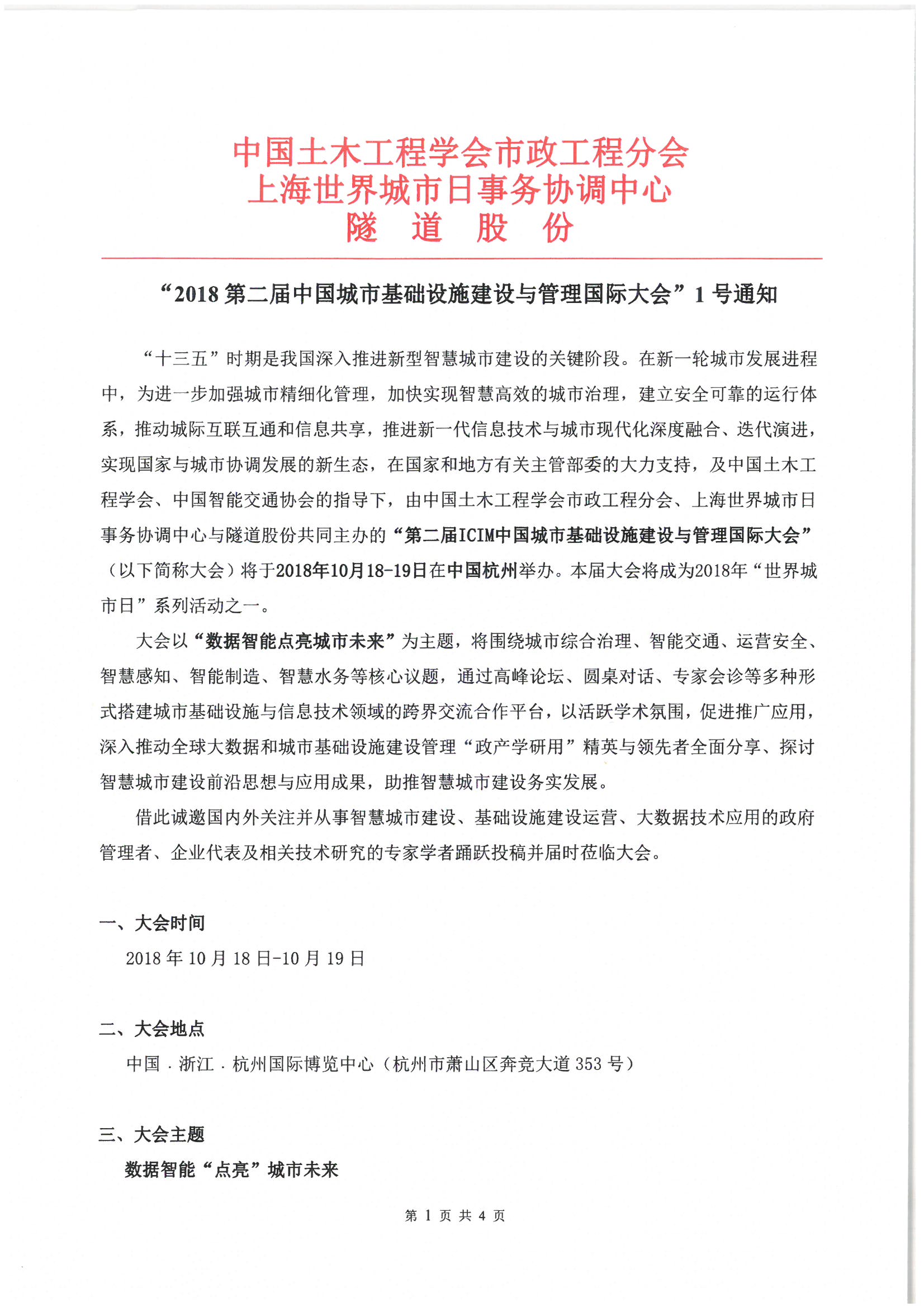 “2018第二届中国城市基础设施建设与管理国际大会”1号通知