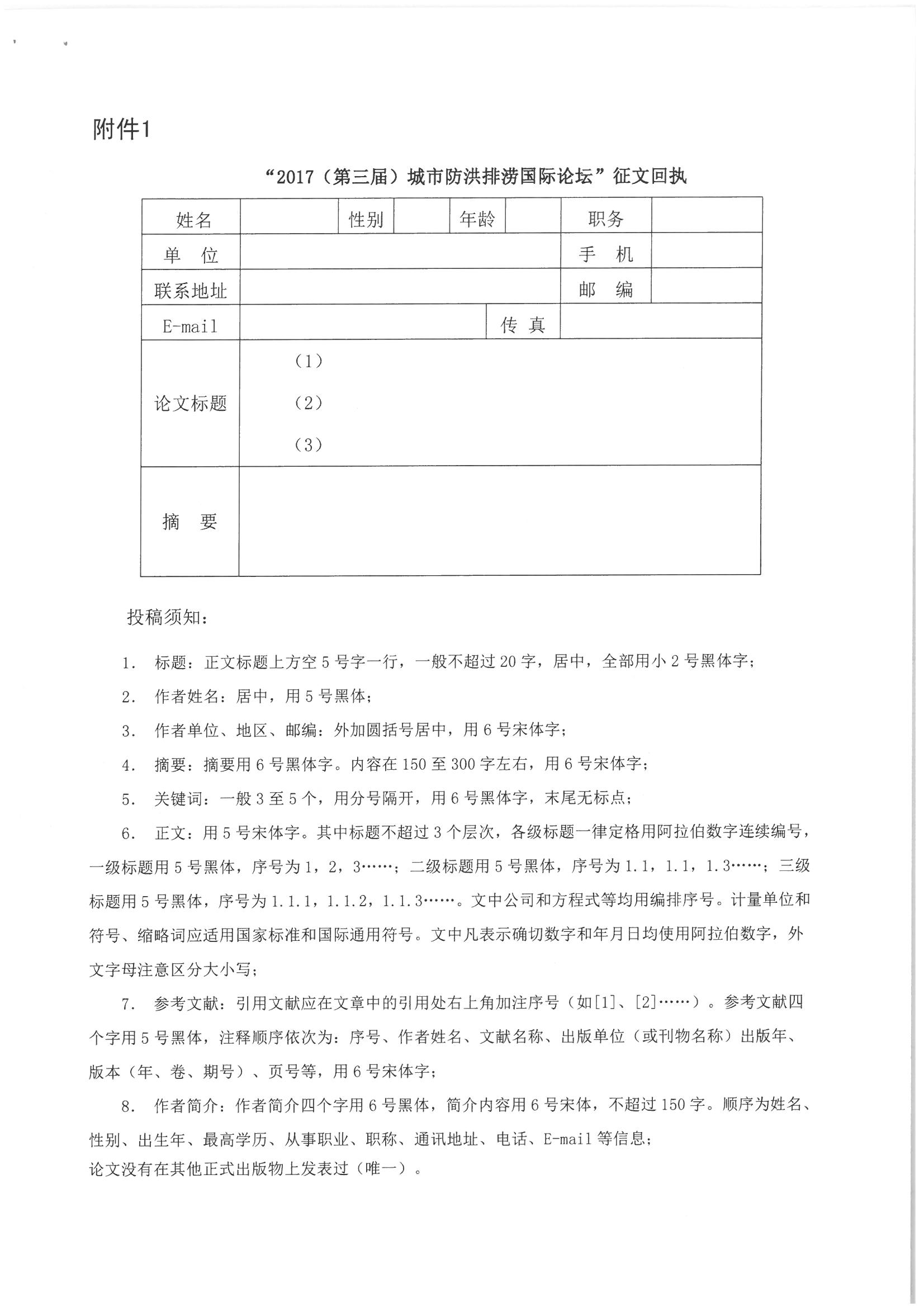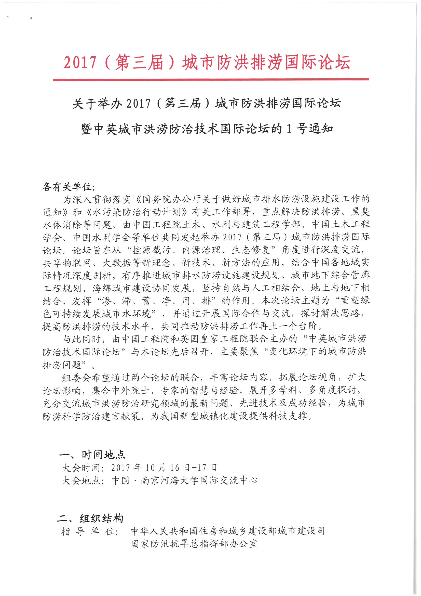 关于举办2017(第三届)城市防洪排涝国际论坛暨中英城市洪涝防治技术国际论坛的1号通知