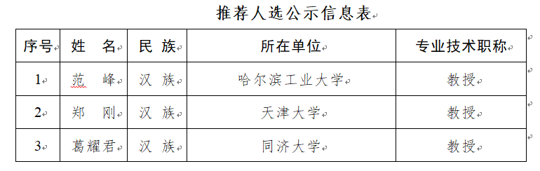 中国土木工程学会秘书处根据“中国科协科学技术创新部关于开展第十五届光华工程科技奖提名人选推荐工作的通知”要求开展被提名人的推荐工作。经过前期机构推荐、材料审核、专家评议,确定3名推荐人选。现对推荐人选有关信息公示如下: