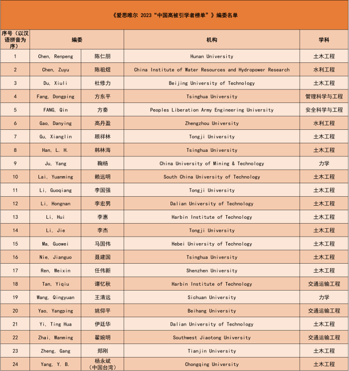近日,爱思唯尔(Elsevier)发布2023“中国高被引学者”(Highly Cited Chinese Researchers)榜单,共计5801人上榜, 《土木工程学报》共有24位编委入选该榜单。