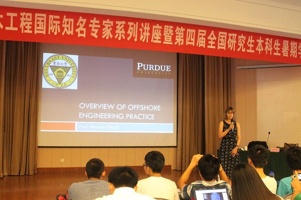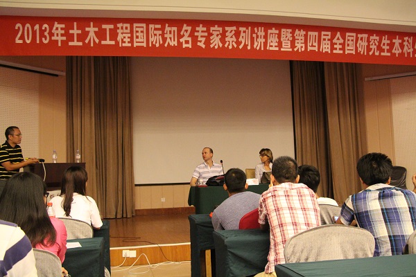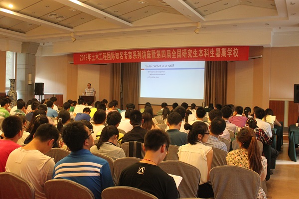 7月4日是2013年土木工程国际知名专家系列讲座暨第四届全国研究生本科生暑期学校的第四天。来自美国普渡大学的Monica Prezzi教授和Rodrigo Salgado教授分别带来了精彩的学术报告。 上午8:30到11:30,Monica Prezzi教授带来了主题为“Overview of Offshore Engineering Practice”的报告。 Prezzi教授主要从事桩与微型桩的分析与设计、土木工程可循环材料的使用等方面的研究。在今天的报告中,Prezzi教授首先展示了中美两国当前的能源结构,借此说明了探寻替代能源的重要意义;介绍了近海工程面临的实际挑战、近些年取得的进展以及当前研究的热点和机遇。Prezzi教授还突出强调了近海实地勘察和近海基础设计两方面的问题。 Prezzi教授的报告逻辑连贯,表述清晰,重视图表的使用,对近海工程的诸多问题进行了生动活泼地阐释。