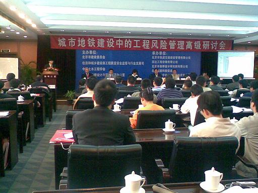 “城市地铁建设中的工程风险管理高级研讨会”于2008年10月17-18日在北京建银大厦召开,会议由北京市建设委员会、住房和城乡建设部工程质量安全监督与行业发展司、中国土木工程学会、北京市勘察设计与测绘管理办公室共同主办,北京市轨道交通建设管理有限公司、高达工程咨询有限公司、北京市勘察设计研究院有限公司、北京城建科技促进会、北京公路学会公路工程地质专业委员会等五家单位联合承办。北京市建委孙乾副主任、北京市勘察设计与测绘管理办公室丁秀云主任、中国土木工程学会张雁秘书长等领导出席会议并发表了讲话。来自全国地铁(轨道交通)建设、勘察设计与咨询、施工单位以及科研院所的代表约120余人参加了会议。