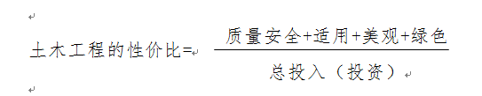 即一个土木工程单位投入(投资)产生的包括质量安全、适用、美观、绿色节能的综合性能越大越好。我们编制标准就是为了促进土木工程科技水平的提高,就是为了促进土木工程的性价比的提高。