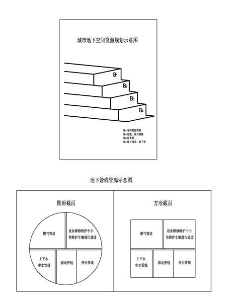 四是要根据地下工程项目不同的特点进行分类,将相同相似的项目相对的集中规划,合理划分。如地下一层以各种管线管廊为主,地下建筑为辅;地下二层以地铁、地下公路、地下公共交通为主,地下建筑为辅;地下三层、四层以地下停车场、地下商业、各种地下室为主(见下面地下空间分层开发示意图)。