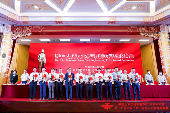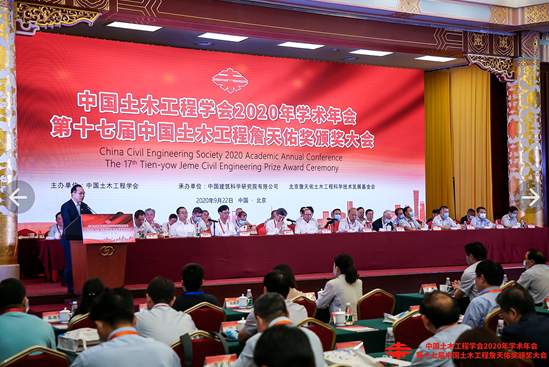 9月22日,中国土木工程学会2020年学术年会暨第十七届中国土木工程詹天佑奖颁奖大会在北京隆重召开,行业领军人物齐聚一堂,表彰31项中国土木工程詹天佑奖获奖工程,并围绕“新基建与土木工程科学发展”主题进行交流研讨。来自住房和城乡建设部、交通运输部、水利部、中国工程院、中国科学技术协会、中国国家铁路集团有限公司(原铁道部)、国家铁路局等单位领导,中国建筑集团有限公司、中国交通建设集团有限公司、中国建筑科学研究院有限公司、中国铁路工程集团有限公司、中国铁道建筑集团有限公司等央企代表,清华大学、同济大学等高校及科研院所代表,有关行业学会、协会,学会理事,学会分支机构代表,各省市土建学会代表,第十七届中国土木工程詹天佑奖获奖单位代表,以及来自全国的土木工程科技工作者代表到会,会议现场参会人数限定为300余人,通过视频直播在线观看的浏览量为517.48万。