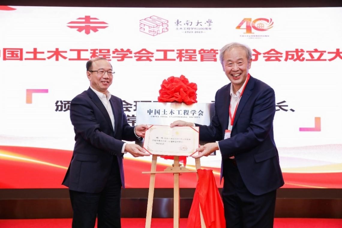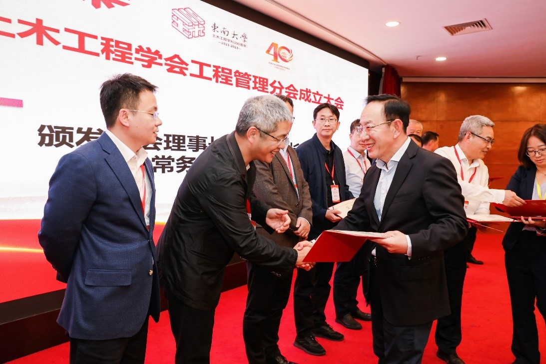 2023年10月21日,中国土木工程学会工程管理分会(以下简称分会)成立大会暨一届一次理事会在南京召开。全国政协常委、人口资源环境委员会副主任、中国土木工程学会理事长易军,中国土木工程学会副理事长尚春明,江苏省住房和城乡建设厅副厅长范信芳,中国工程院院士、江苏省土木建筑学会理事长缪昌文,中国工程院院士、中国交通建设集团首席科学家林鸣,东南大学党委常委、副校长孙立涛等有关部门领导出席了会议。来自全国高校、央企国企等大型企业、科研院所等160余名代表参加了会议。会议由东南大学土木工程学院副院长李德智主持。