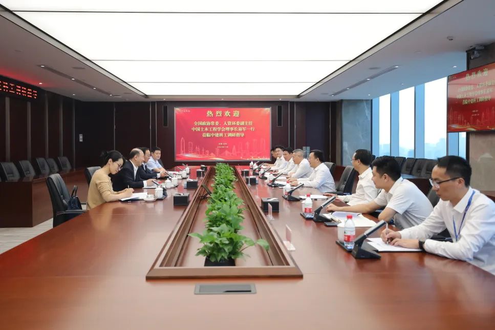 住房和城乡建设部、中国土木工程学会有关领导;中建科工办公室(党委办公室)、科技与设计管理部、工程管理部、中建钢构有关负责人参加调研。