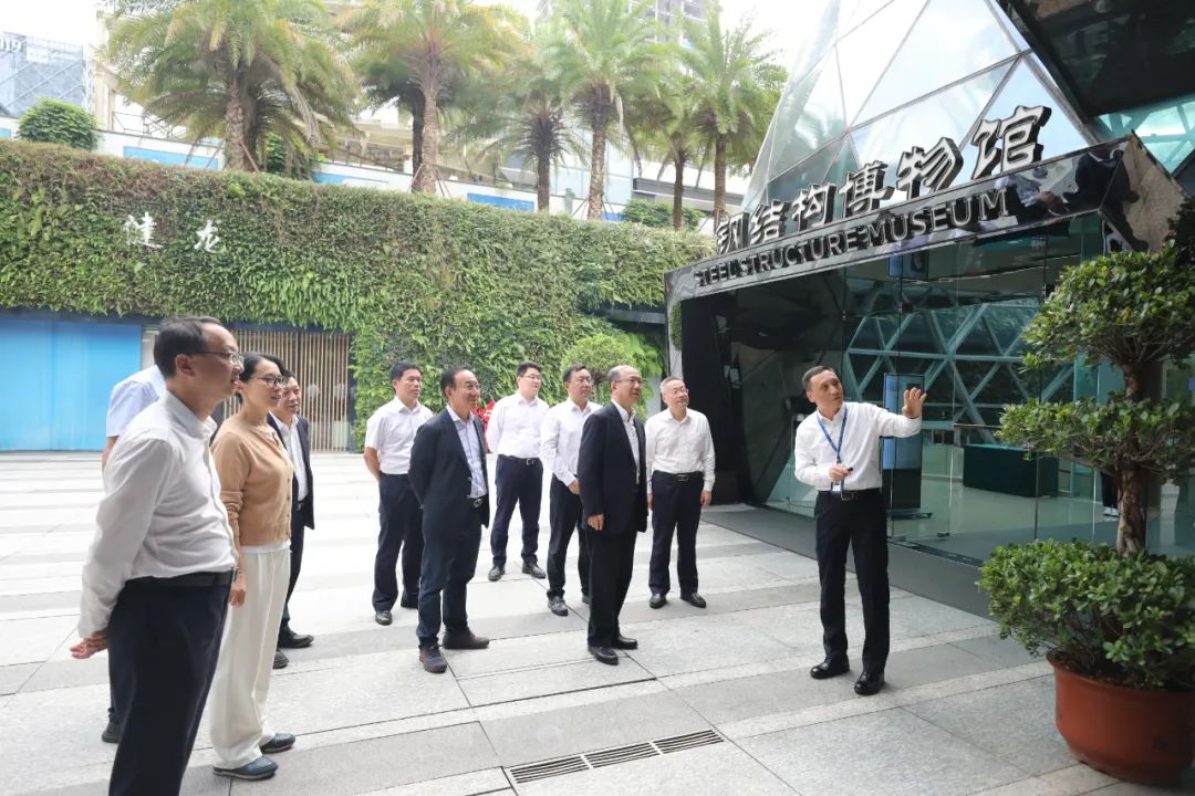 调研期间,易军一行实地调研深圳首批试点、全国首个新能源机械式立体钢结构公交车库——深圳南山中心区智慧公交车库及深圳市“新十大文化设施之一”——深圳湾文化广场项目,参观了由中建科工自主投资、建造、运营的深圳中国钢结构博物馆和中建科工陈列馆。