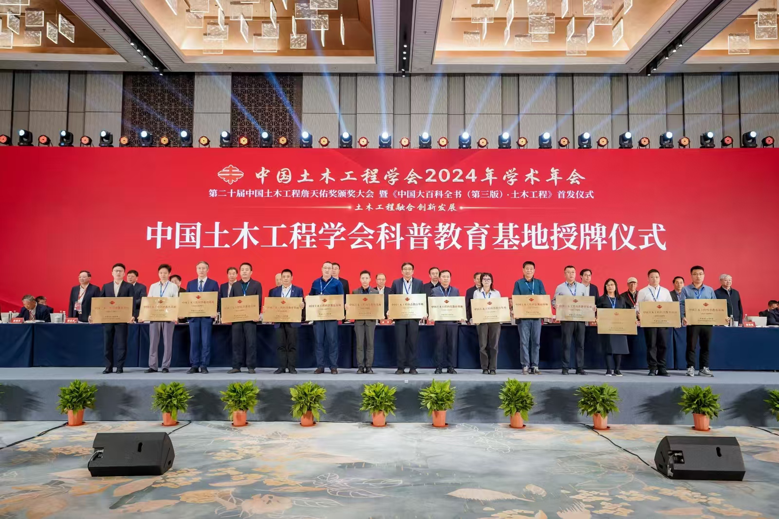 10月22日,中国土木工程学会2024年学术年会、第二十届中国土木工程詹天佑奖颁奖大会暨《中国大百科全书(第三版)·土木工程》首发仪式在苏州举行。开幕式上,举行了中国土木工程学会科普教育基地授牌仪式。