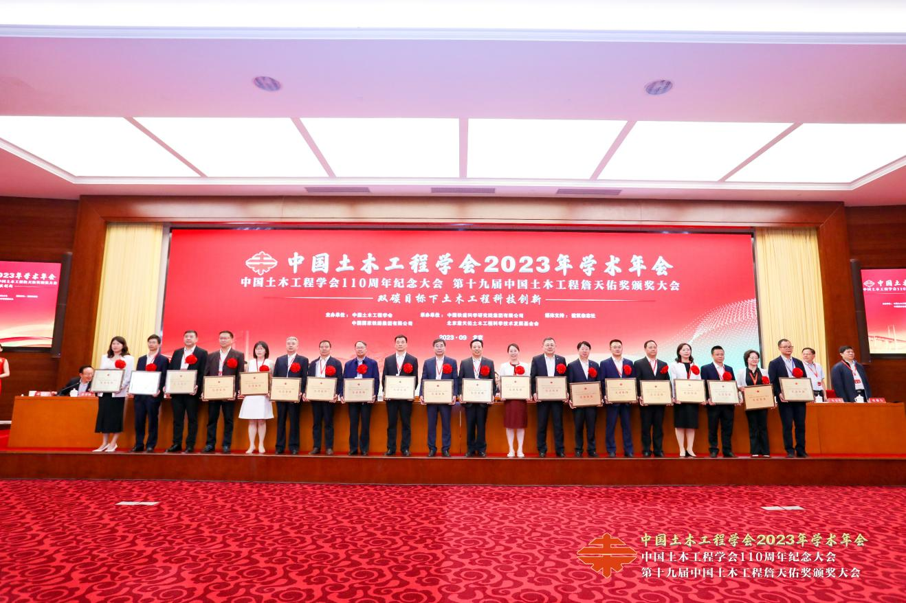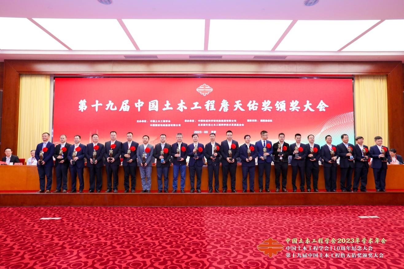2023年9月5日,由中国土木工程学会、中国国家铁路集团有限公司主办,中国铁道科学研究院集团有限公司、北京詹天佑土木工程科学技术发展基金会承办,中国土木工程学会110周年纪念大会、中国土木工程学会2023年学术年会、第十九届中国土木工程詹天佑奖颁奖大会在北京隆重举行。