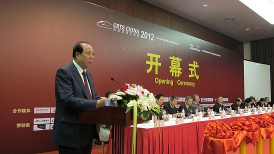 4月26日,「CRTS CHINA 2012国际轨道交通展」在北京国家会议中心举行了盛大的开幕仪式。建设部原副部长、中国土木工程学会谭庆琏理事长,铁道部原副部长、中国土木工程学会蔡庆华副理事长,中国工程院郑颖人院士,国际地铁协会主席Dr. Robin Hirsch,北京市政府副秘书长、北京市轨道交通指挥部常务副指挥徐波,交通运输部科技司赵冲久司长,住房和城乡建设部城市建设司刘贺明副司长,俄罗斯外交部经济合作司副司长Novikov oleg,住房和城乡建设部计划财务与外事司李喆处长,美国铁路工程与养路协会首席执行官Charles H. Emely,中国土木工程学会隧道与地下工程分会郭陕云理事长,中国铁道学会吕长清秘书长,中国南车股份有限公司企业文化部曹钢材部长,鸿与智工业媒体集团副总裁丁永平等领导和嘉宾出席并参加了剪彩仪式。同时,国内外30多家地铁建设与运营代表以及20多个铁路建设与运营代表与来自地铁建设运营、勘察设计、施工监理、科研院所等单位以及技术装备企业代表400余人参加了开幕式。“2012中国国际轨道交通技术展览会”开幕式由中国土木工程学会张雁秘书长主持,国际地铁协会主席Dr. Robin Hirsch,建设部原副部长、中国土木工程学会谭庆琏理事长在开幕式上分别致词。