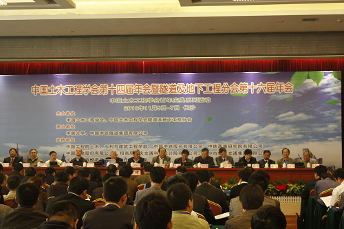 作为中国土木工程学会百年庆典系列活动之一,2010年11月5日~6日,由中国工程院土木水利与建筑工程学部支持,中国土木工程学会、中国土木工程学会隧道及地下工程分会主办,中南大学、中国中铁隧道集团有限公司承办的“中国土木工程学会第十四届年会暨隧道及地下工程分会第十六届年会”在湖南省长沙市枫林宾馆隆重举行,年会主题为“我国隧道及地下工程的新理念与新技术”。