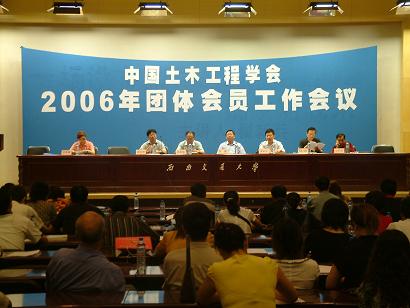 9月6日-8日,我会在四川省成都市西南交通大学召开了2006年团体会员工作会议,来自95个团体会员单位的代表和11个地方学会的代表110余人参加会议,我会秘书长张雁、副秘书长刘海鹰、秘书长助理杨群、张凌出席了会议。四川省建设厅副厅长谭新亚、四川省土木建筑学会理事长陆强、西南交通大学副校长杨立中等领导到会祝贺并讲话。