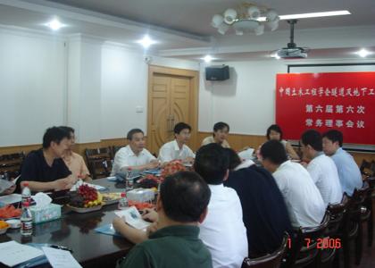 2005年7月1日,隧道及地下工程分会第六届第六次常务理事会议于同济大学召开,理事长郭陕云主持了这次会议。中国土木工程学会秘书长张雁和张凌、杨群秘书长助理,分会副理事长陈韶章、蒋树屏,梅志荣,副秘书长严金秀,常务理事朱合华、吕合林、王良,名誉理事杨林德及风险管理专业委员会主任委员黄宏伟及同济大学、上海隧道股份公司、上海国际展览中心的代表等18人(名单附后)参加了会议。会议议程有四项:总结近三年多来的分会工作; 征求分会下届理事会的组成意见;研究2006年第十四届隧道年会有关事宜;讨论分会下步重点活动及工作计划。经过与会代表的充分讨论和商榷,达成一致意见: