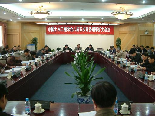 中国土木工程学会第八届第五次常务理事扩大会议于2006年4月8日在中国科技会堂召开。谭庆琏理事长,蔡庆华、胡希捷、徐培福、范立础、袁驷副理事长,张雁秘书长,以及24位常务理事出席了会议;15位常务理事派代表参加了会议;总会各部门负责人、各专业分会、各地方学会,以及部分新增补的理事列席了会议。