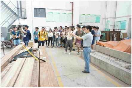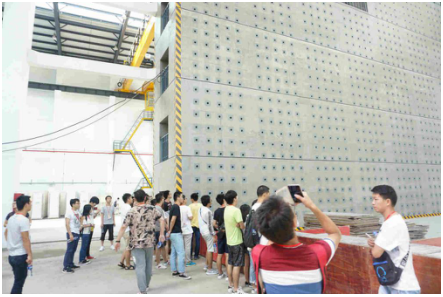 随后,在徐伟杰老师的带领下,学员们走进了今年刚落成的宽敞明亮的新结构试验大厅,一进大门,15m高的大型反力墙就引起了大家的注意。拟建的国内最大国际先进的6m×9m大型振动试验台更是夺人眼球,令人叹为观止,与此同时学员们也就自己感兴趣的问题与老师进行了积极沟通交流。