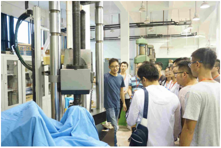 接下来,学员们参观了力学实验室,实验室中有100kN机械式材料试验机、300kN液压万能材料试验机、微机控制扭转试验机等试验设备,为材料基础性能的研究提供了坚实保障。