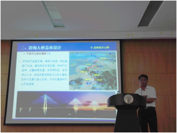首先王仁贵副院长做了题为“跨海大桥的总体设计与技术创新”的精彩报告。他结合自己主持设计的四座超大型跨海大桥(杭州湾大桥、嘉绍大桥、宁波舟山港主通道和六横大桥),强调应充分考虑跨海大桥的复杂建设条件,进行桥型方案的合理选择和总体设计。同时,需要勇于进行技术创新,通过新构造、新材料、新装备、新工艺、新理论等手段方法,解决跨海大桥建设中的复杂工程问题。