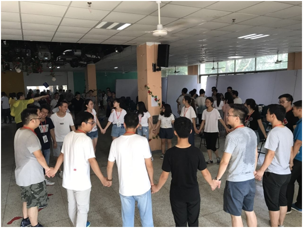 在游戏结束之后,针对各个小组游戏中出现的一些问题,曾老师推心置腹地总结道:“团队的核心是人,而团队合作最重要的就是分工明确、责任到人”,“与其抱着竞争的态度,不如试着合作”,“没有付出哪来的合作”,可谓妙语连珠。在活动的最后,曾老师用北宋著名思想家张载的名言提出了对学员们的希冀:“为天地立心,为生民立命,为往圣继绝学,为万世开太平。”合影留念之后,素质拓展活动圆满结束。