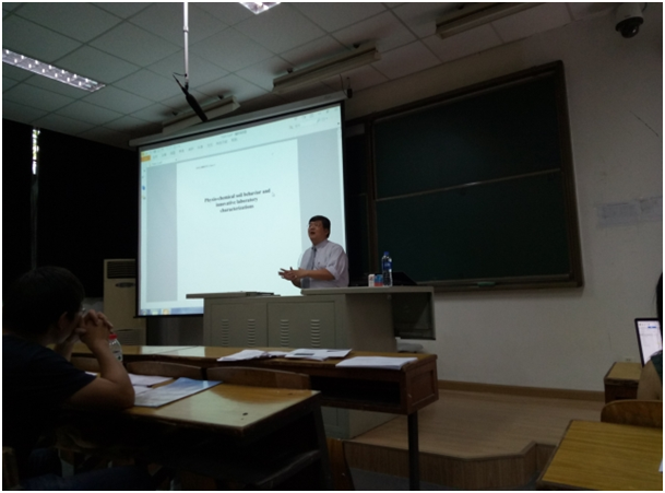 上午,Wang Yu-Hsing教授给同学们带来了题为 “Physico-chemical soil behavior and innovative laboratory characterizations”的报告,Wang Yu-Hsing教授首先向学员介绍了土的材料属性,从分子的角度向大家解释了土的相关性能成因。然后又向学员介绍了粘土矿物的表面电荷和结构,并结合实例解释了粘土矿物的特殊性质以及形成的原因。紧接着Wang Yu-Hsing教授又介绍了他目前的研究方向,主要是将岩土工程同人工智能结合,让岩土工程适应并融入当前大数据时代。学员们从Wang Yu-Hsing教授讲座中深受启发,踊跃提问。