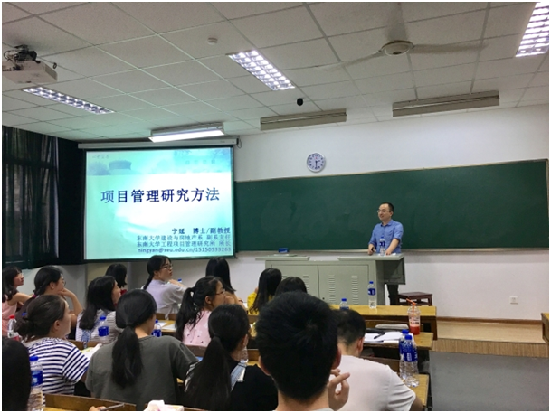 下午,东南大学土木工程学院建设与房地产系副主任宁延老师为大家进行了题为“项目管理研究方法”的讲座。宁老师主要为学员介绍了研究的流程、解释和设计原则、研究设计的方法等方面。首先从三个案例为学员们讲解了研究课题过程中思维的过程以及如何严密思考规避攻击。接着,宁老师介绍了管理问题研究的类别、解释科学中的理论体系、设计思维的必要性以及设计与解释研究的关系;并重点介绍了研究设计选择原则、研究方法论的吻合以及抽样调查、概念测量、案例研究等的具体方法。最后,宁老师就理论、实践、方法的关系进行总结。