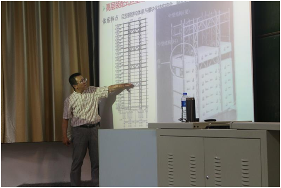 舒教授从装配式钢结构住宅的研究背景、工程应用、缺陷与问题、发展趋势、思考与建议五个方面进行了讲解,其中穿插了许多工程经验和实际案例。报告内容丰富,直观生动,使同学们开拓了视野。