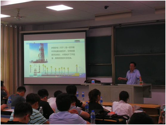 徐教授首先回忆了在童年以及青年时期的农村生活和学习经历,并分享了各个阶段的心路历程。之后,徐教授介绍了他所取得的一些研究成果,如不平衡荷载下基坑受力及变形理论,交通荷载下基坑受力及变形理论,长短围护桩工法,交通荷载下饱和地基沉降机理及控制技术等,以及这些研究成果在工程上的应用,如杭州市民中心,杭州公望大厦等,强调了研究应将理论与实际工程相结合。徐教授报告贴近生活,课堂气氛轻松愉快,大家受益匪浅。