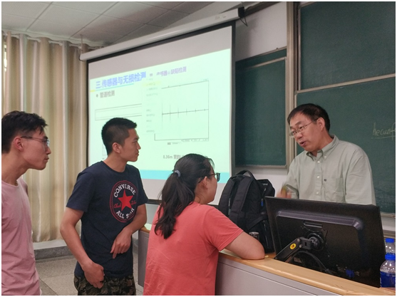 何教授的报告由浅入深,从声波到传感器,再到信号接收与处理,帮助我们建立了声学中的基本概念,为理解无损检测技术以及工程实际应用提供了很大的帮助。何教授结合工程实例,详细说明了不同情况下的无损检测过程以及结果有效性的分析。报告结束后,学员们纷纷举手,踊跃向何教授提问,课堂气氛十分热烈,何教授也对学员们的问题进行了一一讲解。