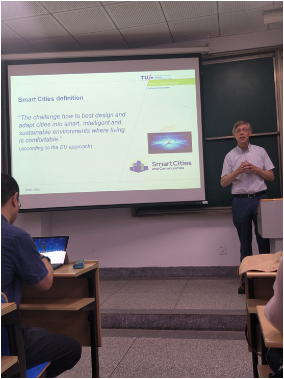 Bauke教授从智慧城市所具备的条件引入报告的主题〝What is Smart City〞。接着,介绍了智慧城市的定义,并对相关的要素逐一探讨并分析。从智慧交通、智慧灯控以及城市网络到智慧社区、智慧公园到智慧小镇,Bauke教授采用头脑风暴的模式将智慧城市所需要的要素经过分解组合,将其中所需要的研究方法和相关技术向我们娓娓道来。Bauke教授在讲解过程中结合一些模拟动画以及调查的相关视频使得报告十分生动有趣。