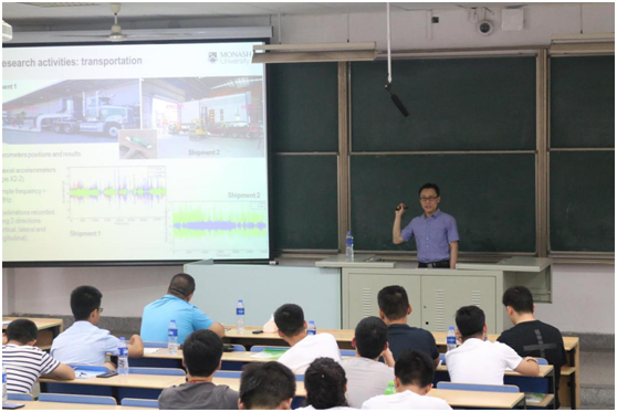 柏宇教授的报告题目分别为〝Modular Structural Assembly Using Fiber Reinforced Polymer Composites: Research and Applications〞、〝Steel Modular Construction in Australia: Research and Applications〞。报告主要包含以下几个方面:模块化构件的运输、连接、耐火性、耐久性。柏教授通过照片、试验数据、研究成果对每个关键问题都做了生动的阐述。创新性的研究工作引发了学员们的热烈讨论。