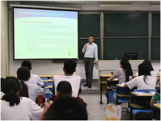 赵宪博老师带来了题为〝Green Building Research: Analysis and Visualization〞的报告。赵老师首先介绍了绿色建筑的发展现状,指出澳大利亚现有的绿色建筑研究主要以商业建筑为主体,接着赵老师讲解了绿色建筑的结构组成以及如何评估绿色建筑,涵盖多个评价指标及评价体系。赵老师从噪音、能源、材料等多个角度,与可持续发展相结合深入讲解了什么是绿色建筑,并从环境、经济、社会三个角度阐明绿色建筑的益处。随后,赵老师以冰岛、澳洲、芬兰、新加坡、中国等多个国家的相关政策举措为例,与同学们一同探讨应如何实现绿色建筑。最后,赵老师通过对全球绿色建筑研究的文献统计分析,指出了目前绿色建筑领域研究的热点、方向及发展现状,提出现有的知识缺口和未来研究的发展方向。讲座现场气氛活跃,赵宪博老师耐心回答学员们的问题,并倡导学员们应以批判性思维来做科研,不断培养科研能力。