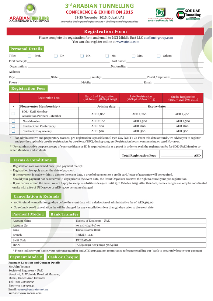 3rd Arabian Tunnelling Conference & Exhibition 2015 (23-25 November 2015, Dubai, UAE)