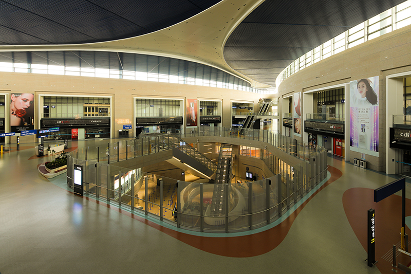 1.面对全球面积最大、功能最复杂的卫星厅,创新设计了差异化的功能流程组织,国际国内双层候机,实现了更高的空间利用效率。35座三层高可转换登机桥,集国内、国际、出发、到达功能于一体,同一架飞机在原地完成国际、国内航班的切换,提高旅客的出行品质,可转换登机桥在国内机场首次大规模应用。