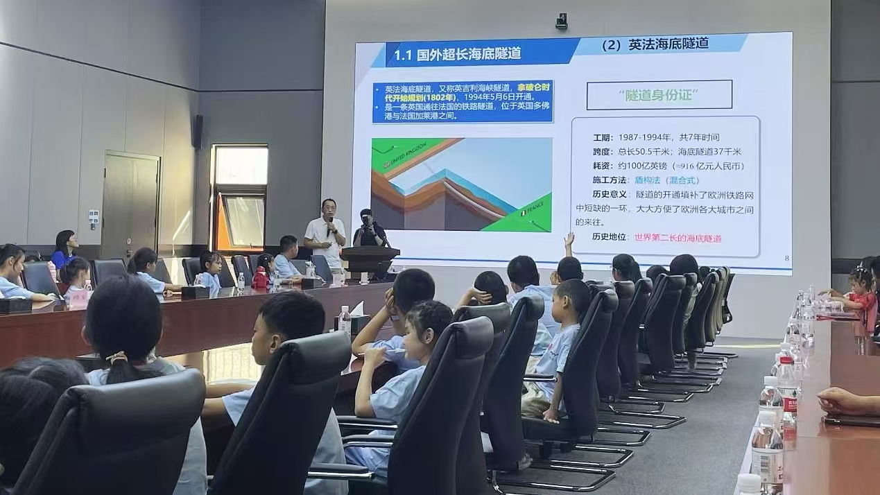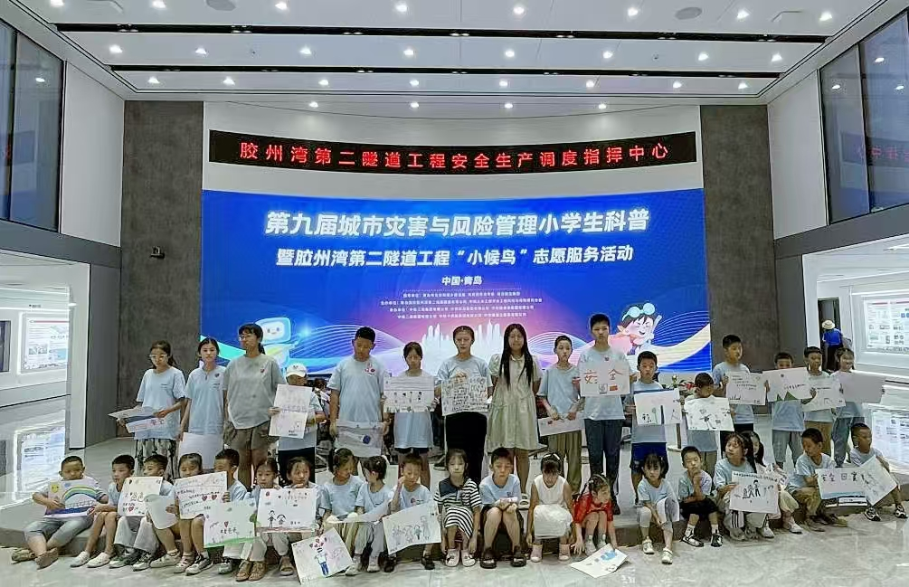 8月13日,第九届城市灾害与风险管理小学生科普活动在青岛胶州湾第二隧道举行。中国土木工程学会工程风险与保险研究分会副秘书长张东明、青岛市团市委青年志愿者部负责人吴晓菲、青岛国信集团党群部负责人张荣青,及来自胶州湾第二隧道参建单位的员工家属及“小候鸟”小朋友共计100余人参加活动。
