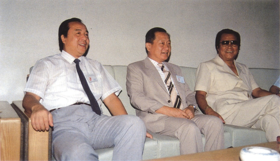 时任建设部部长林汉雄(右一)、副部长谭庆琏(左一)及学会副理事长许溶烈出席国际给水排水学术会议(1989年7月)
