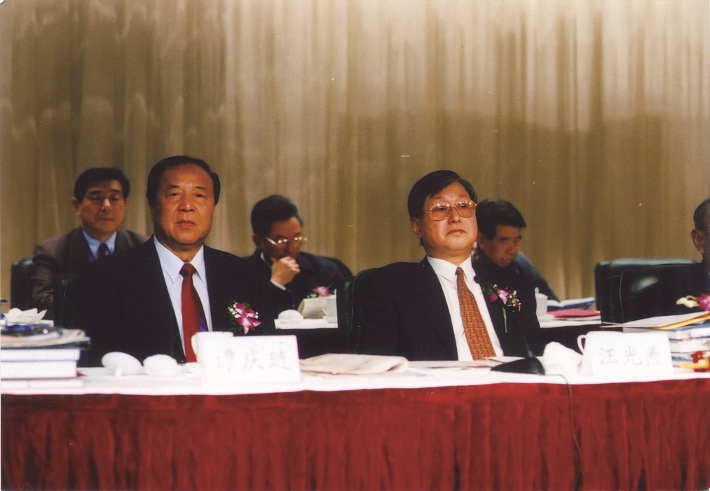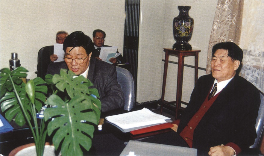 时任学会理事长侯捷、常务副理事长姚兵在七届一次常务理事会上(1998年3月)