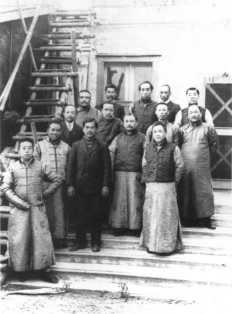 1913年三会合并组建中华工程师会,詹天佑(中)与中华工程师会部分会员合影