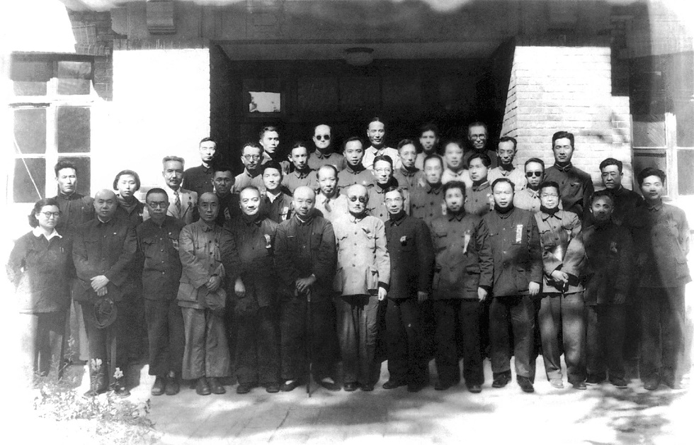 1953年9月24日重建中国土木工程学会,第一次全国代表大会在北京召开,茅以升理事长(左八)与全体代表合影