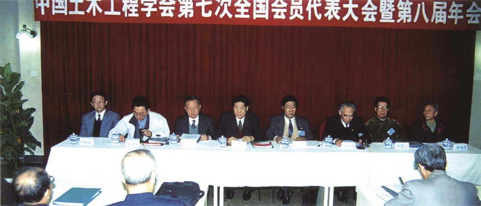 中国土木工程学会第七次全国代表大会(1998年3月)(左起:刘西拉、项海帆、许溶烈、侯捷、姚兵、程庆国、陈肇元、张朝贵)