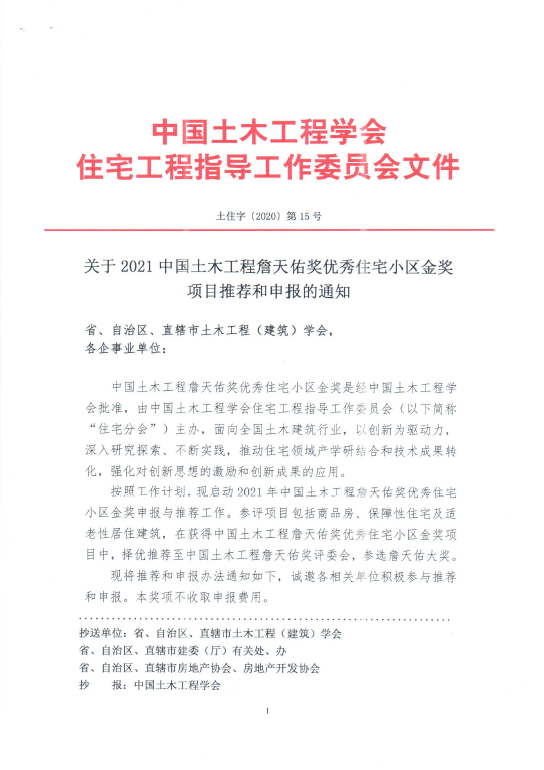 关于2021中国土木工程詹天佑奖优秀住宅小区金奖项目推荐和申报的通知