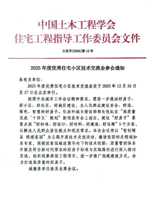 2025年度优秀住宅小区技术交流会参会通知