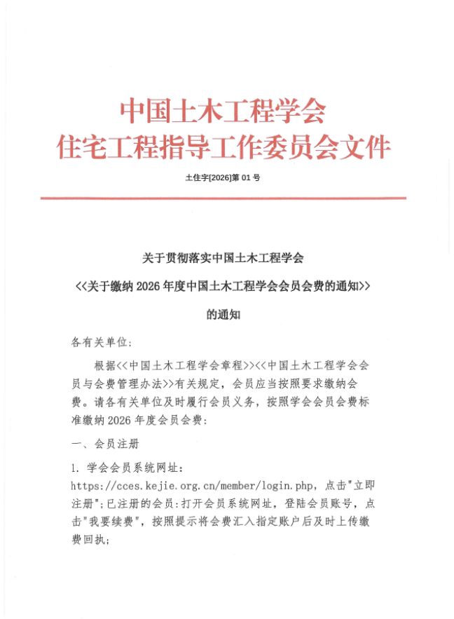 关于贯彻落实中国土木工程学会《关于缴纳2026年度中国土木工程学会会员会费的通知》的通知